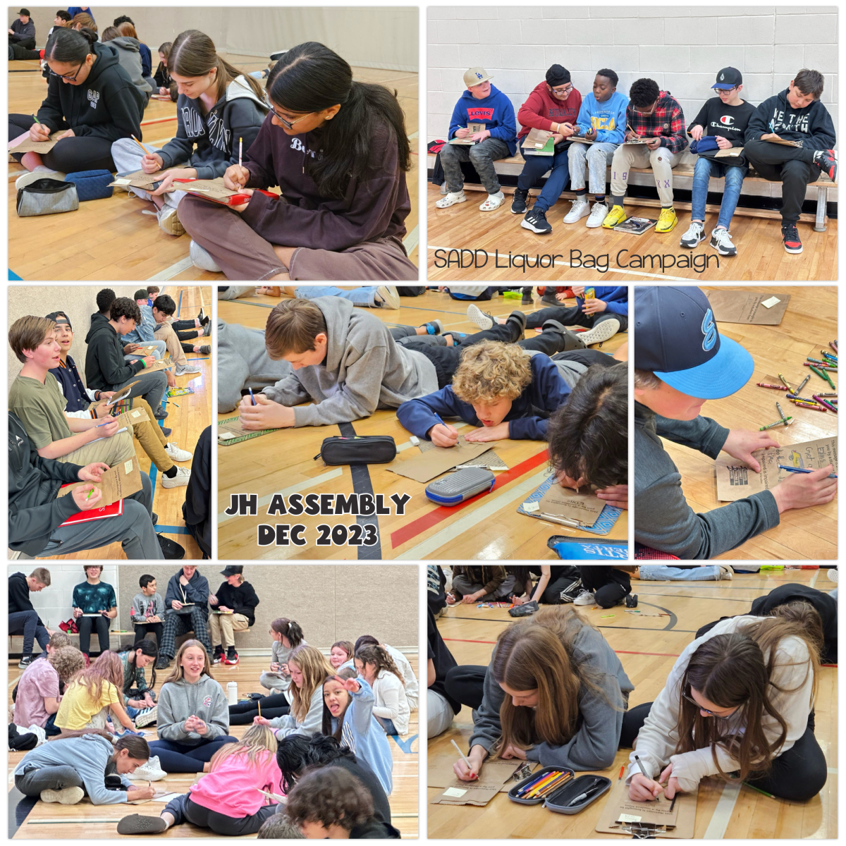 Junior High students learned about SADD (Students Against Drunk Driving) and participated in a community awareness project. Each student created an educational message for the SADD liquor bag campaign. When these bags are done, they will be dropped off at local liquor stores to be used during the holiday season. Junior High students also participated in a discussion to create a survey for feedback on a number of topics. We have Leader in Me certificates for JH students and we will use survey results to determine best time to receive these. Stay tuned!