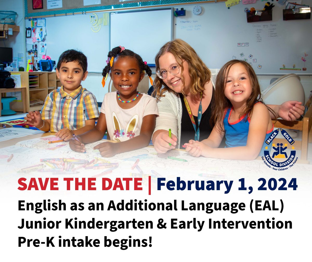 Our EAL Junior Kindergarten program is a social, play-based, targeted learning program for children whose main language at home is not English. It allows kids to grow, interact, imagine, experiment, and explore while enhancing their English language skills. More info: www.blackgold.ca/esl-junior-kindergarten