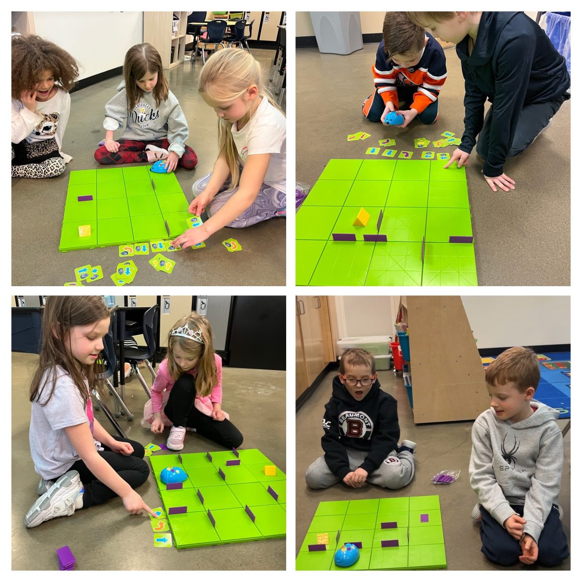 Grade 1AI immersion students learning how to code to move their mouse on a board.