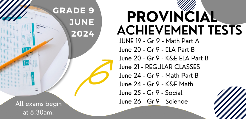 Good luck to the Grade 6AI and 9 students who are writing their first PAT tomorrow. Please check all exam schedule dates on our school calendar or on one of the graphics in the post below.