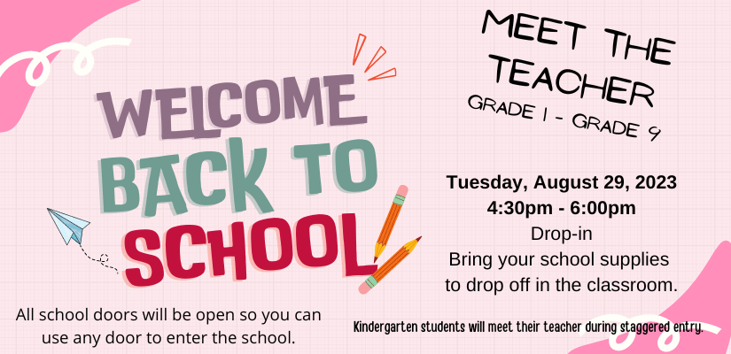 Welcome to Principal’s Corner. Welcome Back to a new school year. Please read the important information below. We look forward to seeing Grade 1 – 9 students and their families tomorrow night at our Meet the Teacher event. It is drop-in from 4:30 – 6:00 p.m.